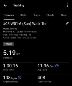 An easy 1 hour walk as cross training on Sunday, knowing that they will have to repeat it all over again the following day. They quickly adapted to this new program, being very careful not to over-stretch themselves. Running 5 times a week is quite a big jump from the Novice Program of running 3 times a week.