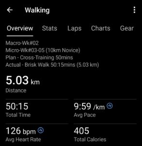 Actual: Brisk Walk 50:15 mins (5.03 km)