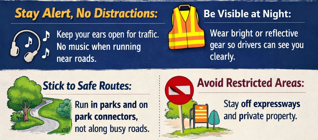 Recently, I was standing at a traffic light waiting for it to turn green so I could cross. To my shock, a lady jogger ran past me and straight onto the road. Fortunately, the approaching car managed to stop in time. Incidents like this are not uncommon, as frequently seen on social media platforms such as Roads.sg and SGRV.